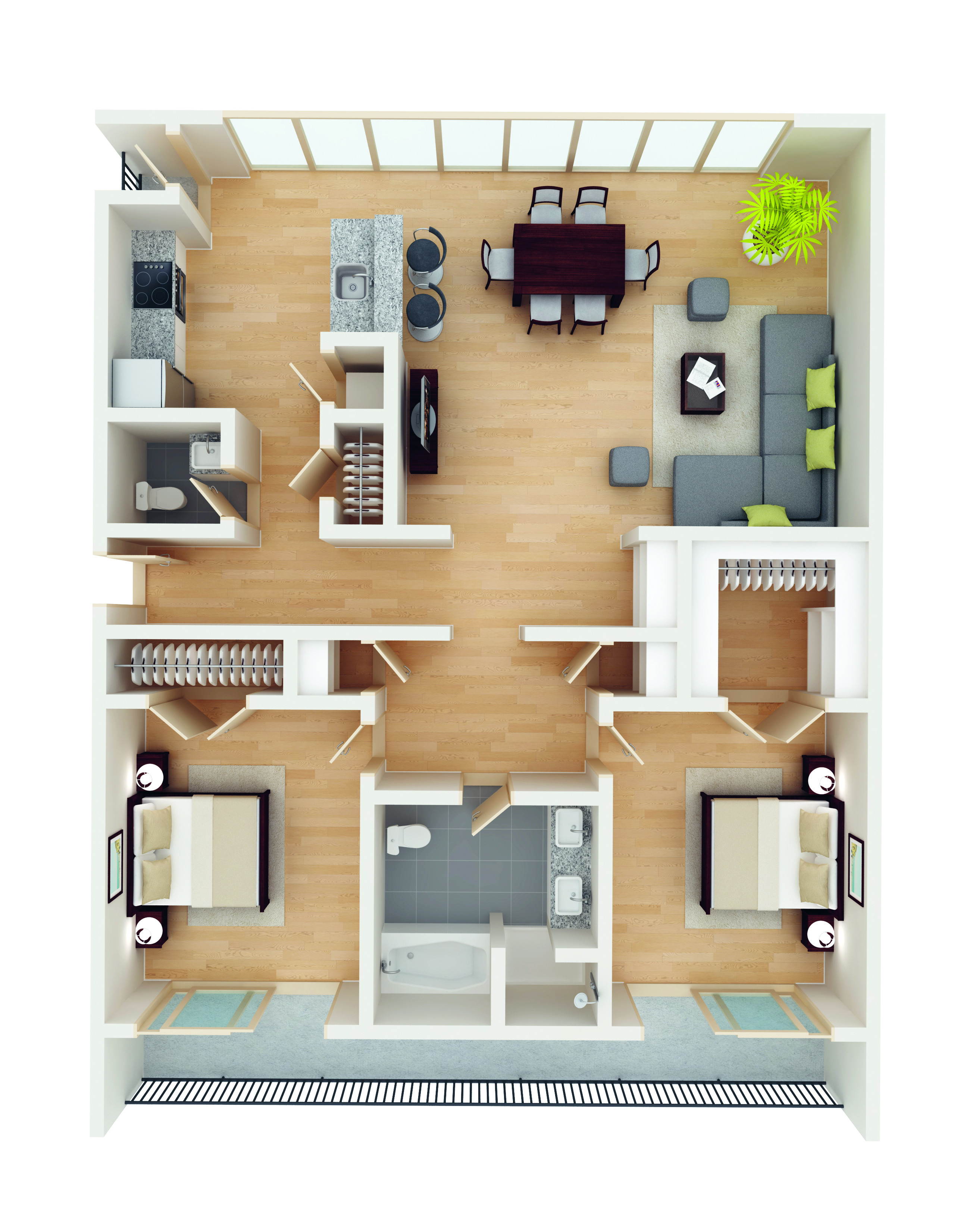 Beispiel Herd, Spüle, Dusche, Waschbecken etc. in Küche und Bad einzeichnen - Erstellung einer detaillierten Wohnflächenberechnung